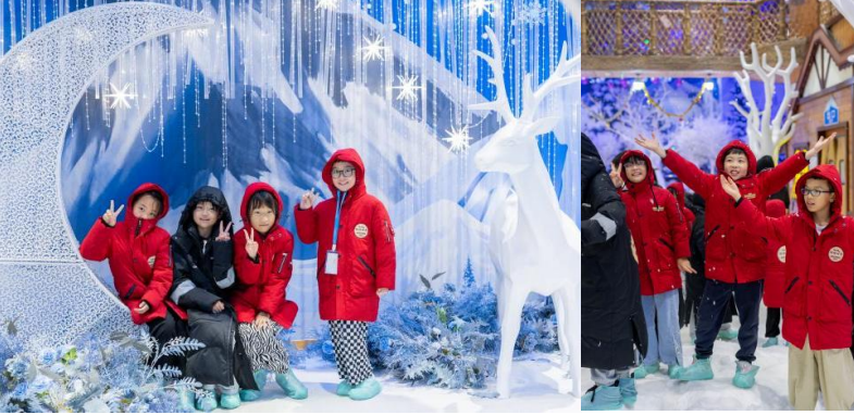 冰雪世界建有冰雪城堡、梦幻冰湖,晶莹的雪花漫天飞舞,仿佛童话世界,孩子们可以在这里尽情享受夏日里的清凉。