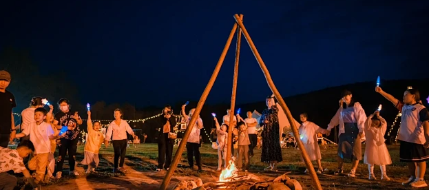 篝火晚会,待狂欢稍歇,大家席地而坐,仰望浩瀚星空。在火光映照下,分享研学一天的心得收获,带队老师也会融入其中,引导大家将篝火晚会的感悟与日常学习相结合。